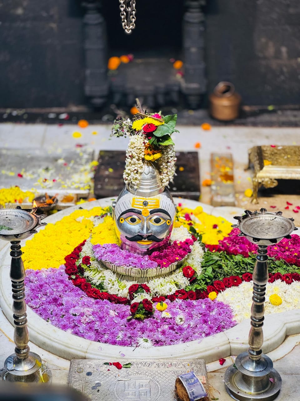 Through the “Shri Trimbakeshwar Sansthan (Trust)”, a ‘Panch Mukhi’ crown has been established on this ancient Jyotirlinga. The story has it that the crown was established by the five Pandavas themselves. This “Pandavankalin crown” is rare and studded with many diamonds and gems.
